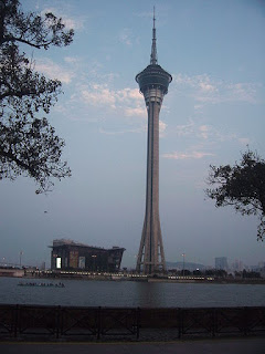 澳門賭王暨首富何鴻燊前往紐西蘭參觀時,對奧克蘭電視塔印象深刻,遂邀請紐西蘭建築師 Gordon Moller 在澳門興建一座完全相同的電視塔,這座電視塔於 2001 年澳門主權回歸兩週年時開幕,高度僅略高於紐西蘭電視塔;今日這座塔不但成為澳門新地標,也是澳門娛樂中心,包括地下商店街、一樓賭場與二樓的電影院,2002 年,這座電視塔推出 233 公尺的高空彈跳,至今仍是世界最高的建物高空彈跳地點。